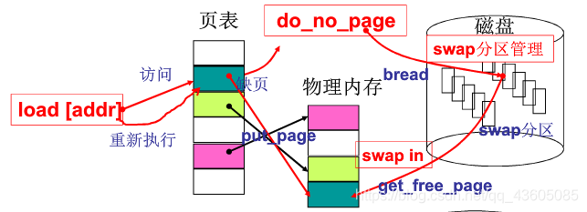 基于局部性原理,在程序装入时,可以将程序的一部分装入内存,而将其余部分留在外存,就可以启动程序执行。在程序执行过程中,当所访问的信息不在内存时(缺页中断),由操作系统将所需要的部分调入内存,然后继续执行程序。另一方面,操作系统将内存中暂时不使用的内容换出到外存上,从而腾出空间存放将要调入内存的信息
