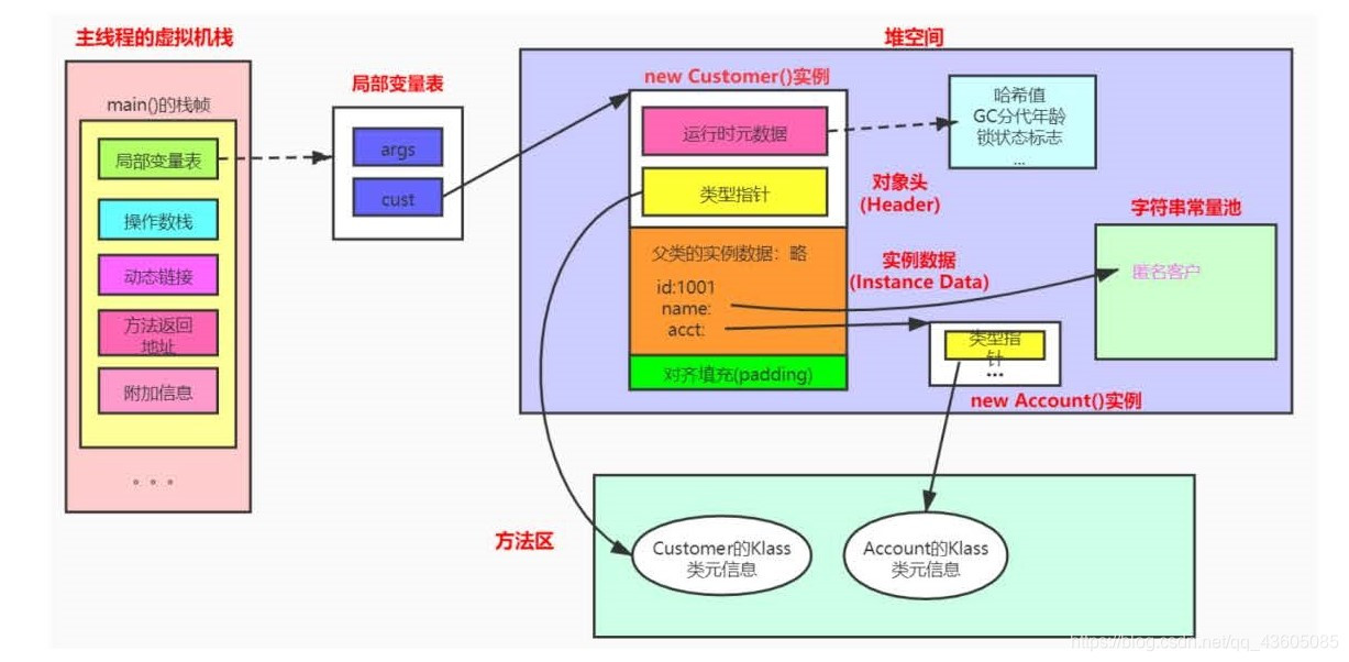 2.1.5.1 方法区、堆、JVM栈之间的交互关系:
